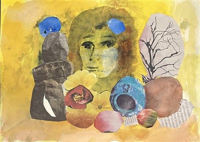 Akvareller, som knappast målades med pensel, utan skapades med plastkniv, snörnystan, rutvävd tapetskarv, svampar, tårtpapper, bubbelplast, plastfolie, gamla lakan, ja allt vi hade som kunde lämna struktur. Poscapennor eller Molotovpennor för att skriva eller göra konturer i målningen.