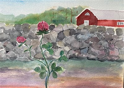 Fredag 13 augusti tog elva Sprayare båten till Arholma. Vi bodde bekvämt på det fantastiska vandrarhemmet Bull -August. Solen sken och alla drog iväg åt olika håll på jakt efter motiv. Ett sakta strilande regn på avresedagen hindrade oss inte från att ge oss ut för att måla av en lada eller två.