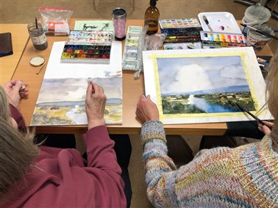 Vädret inför denna dag var mycket osäkert, men vi hade tur och kunde njuta av en härlig, solig dag att måla utomhus.