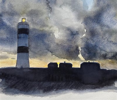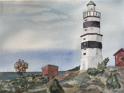 Igångsättare blev att måla av fyren med både vänster och höger hand. Det är roligt om man lyckas släppa på kontrollen och acceptera resultatet hur det än blir. En svår konst men resultatet blir oftast bra.