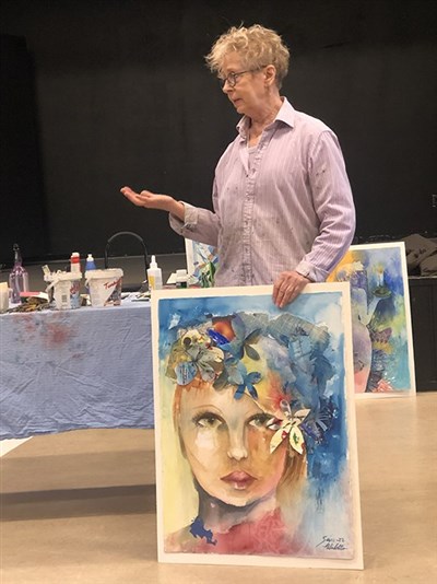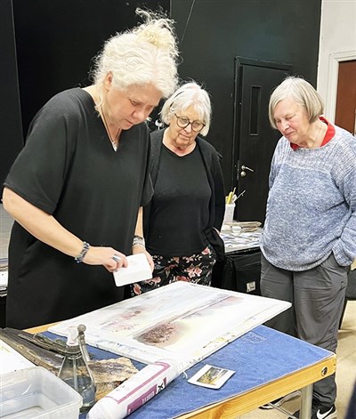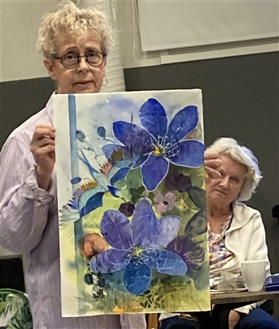 Hon inledde med att berätta om sitt tidigare medlemsskap i Spray, för 25 år sedan, och därefter många års akvarellmåleri, och nu på heltid som akvarellkonstnär.