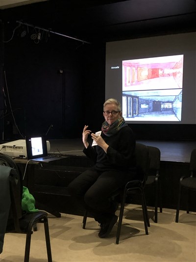 Hon inledde med att berätta om sitt tidigare medlemsskap i Spray, för 25 år sedan, och därefter många års akvarellmåleri, och nu på heltid som akvarellkonstnär.
